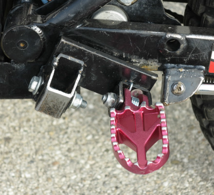 Fußrasten um 7 cm zurück verlegt: der Fahrer spürt das Hinterrad besser, zudem ist das Vorderrad leichter anzuheben